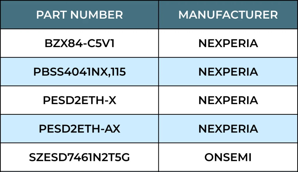 Intercepted Brands: DIODES, NEXPERIA, SK HYNIX, SAMSUNG, TDK